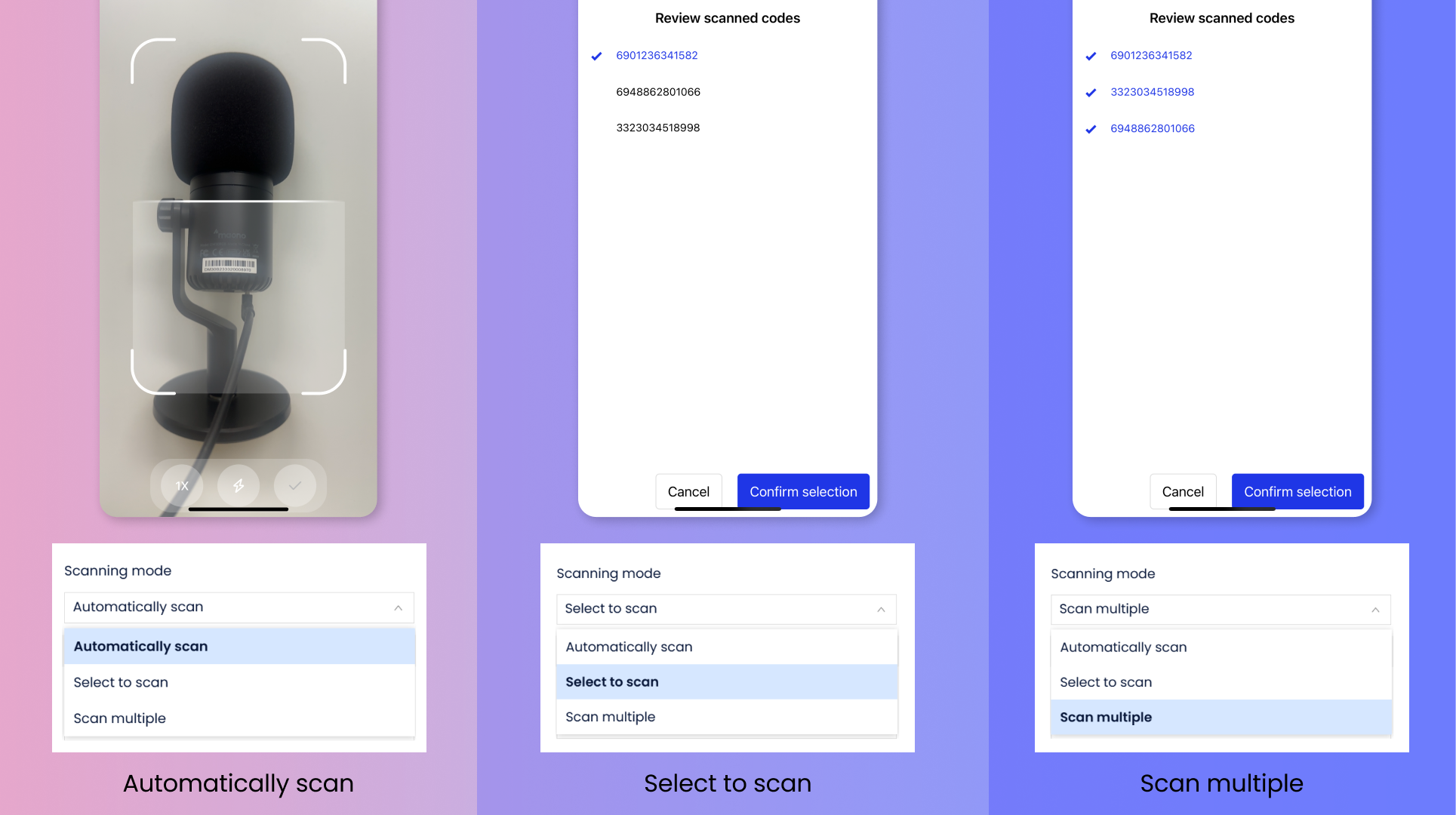 - Supports multiple formats (Code128, EAN, QR, etc.)